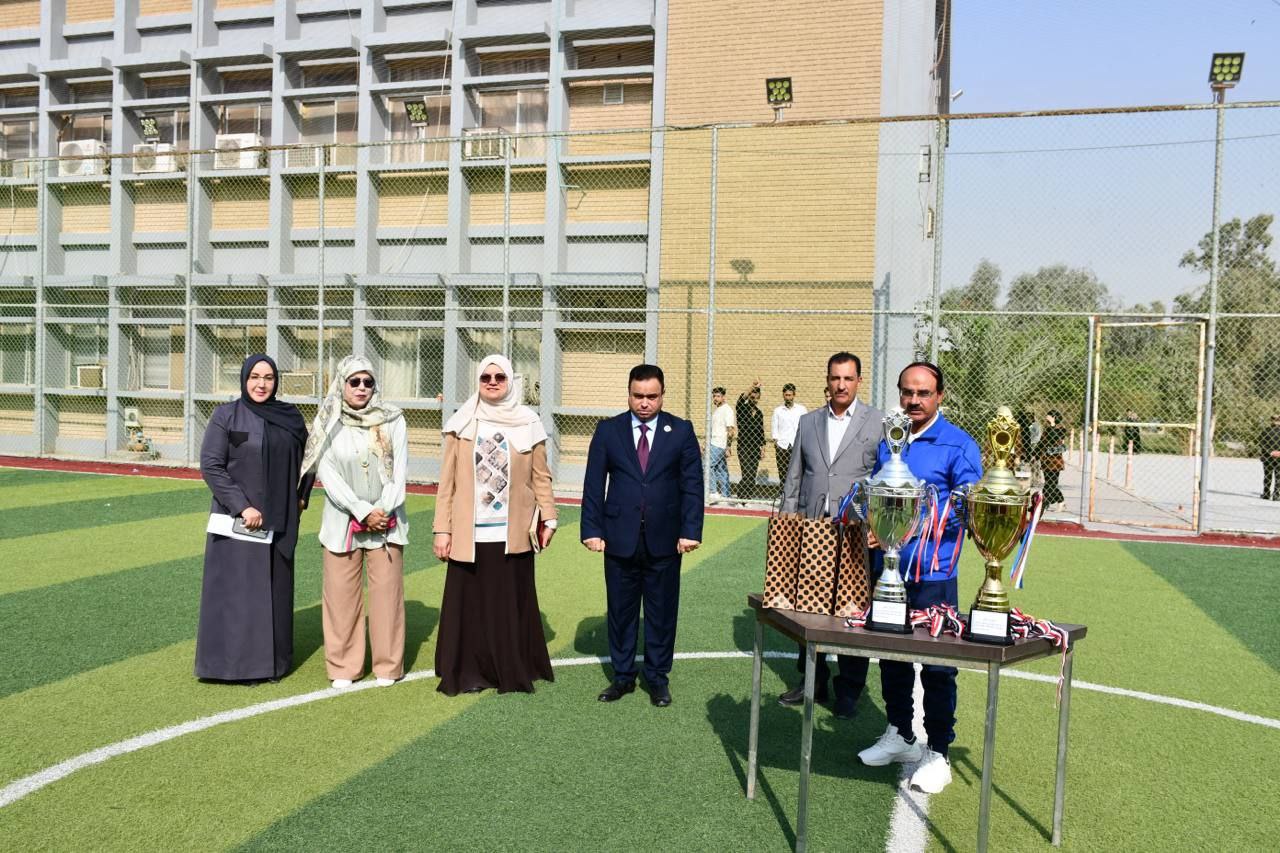 اختتمت كلية التربية للعلوم الإنسانية في جامعة البصرة بطولة أقسام الكلية بكرة قدم للصالات (الخماسي) للطلاب، وذلك بإقامة المباراة النهائية بين فريق قسم اللغة الإنكليزية (مسائي) وفريق قسم الجغرافية، بحضور عميد الكلية الدكتور وسام جمعة لفتة وعدد من تدريسي الكلية وطلبتها.