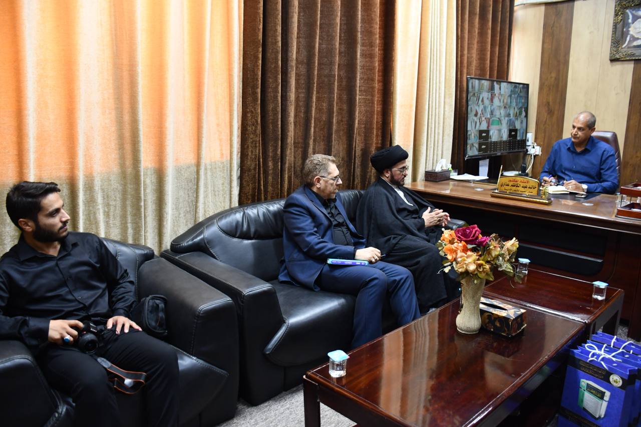 زار وفد من العتبة الحسينية المقدسة كلية التربية للعلوم الإنسانية في جامعة البصرة لتعزيز التعاون العلمي والثقافي بين الطرفين وكان في استقبال الوفد السيد معاون العميد للشؤون الإدارية الأستاذ الدكتور خالد عبد الكاظم عذاري وقدم الوفد الدعوة للمشاركة في المهرجان ربيع الشهادة العالمي الثامن عشر الذي يشهد مشاركة واسعة من قبل العلماء والمفكرين من مختلف أنحاء العالم وتأتي زيارة الوفد في إطار التعاون العلمي والثقافي بين جامعة البصرة والمؤسسات العلمية في العتبة الحسينية المقدسة ولدعم الباحثين الراغبين بالمشاركة في المهرجان