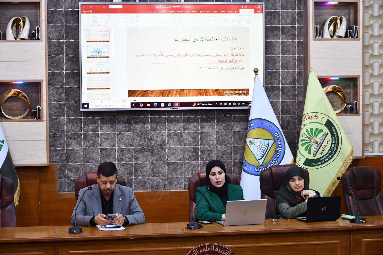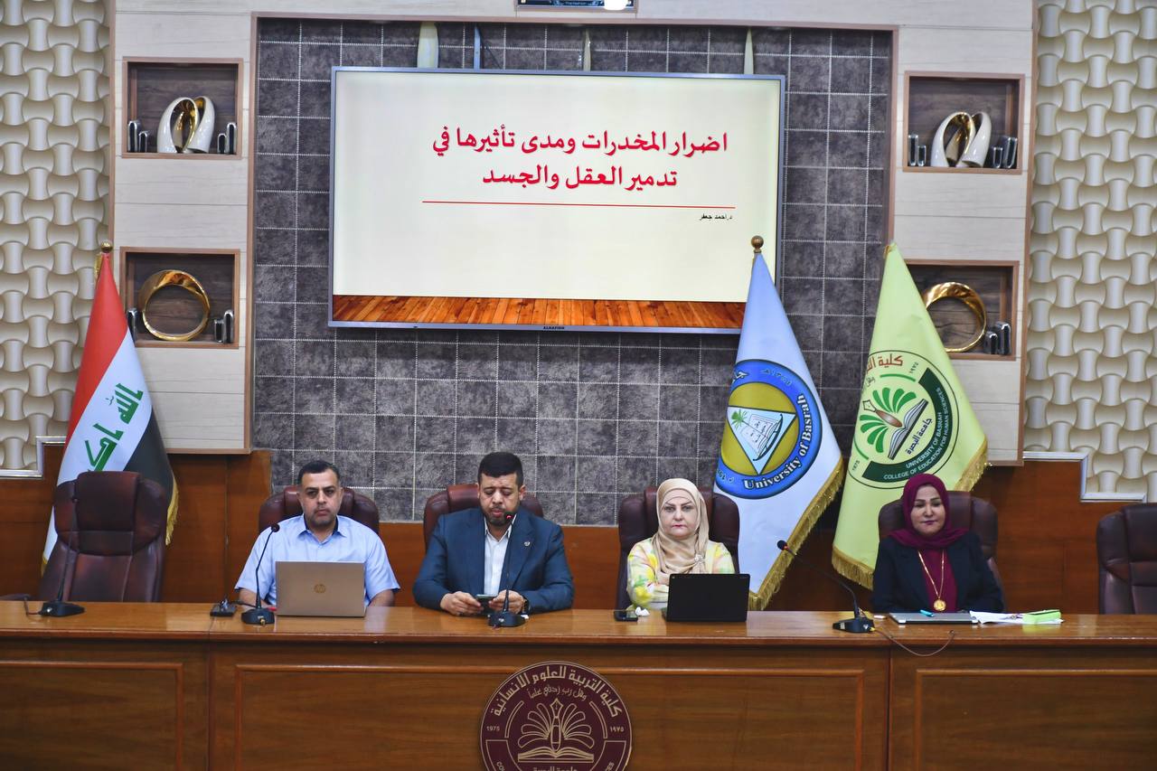 نظمت كلية التربية للعلوم الإنسانية في جامعة البصرة سلسلة من الندوات التوعوية حول مخاطر آفة المخدرات، وذلك ضمن توجيهات وزارة التعليم العالي والبحث العلمي الهادفة إلى تعزيز الوعي المجتمعي بخطورة هذه الظاهرة والحد من انتشارها بين فئات المجتمع المختلفة.
