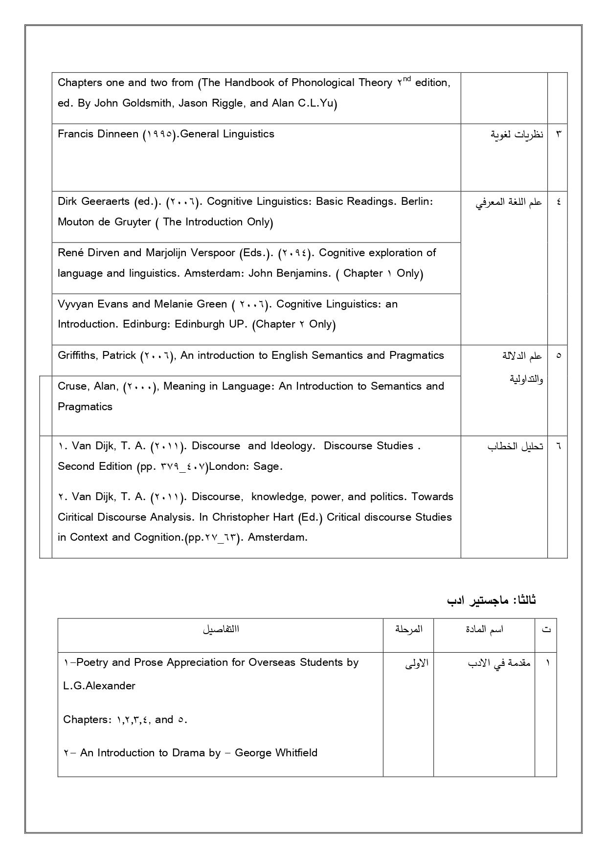 البرنامج الاكاديمي لقسم اللغة العربية