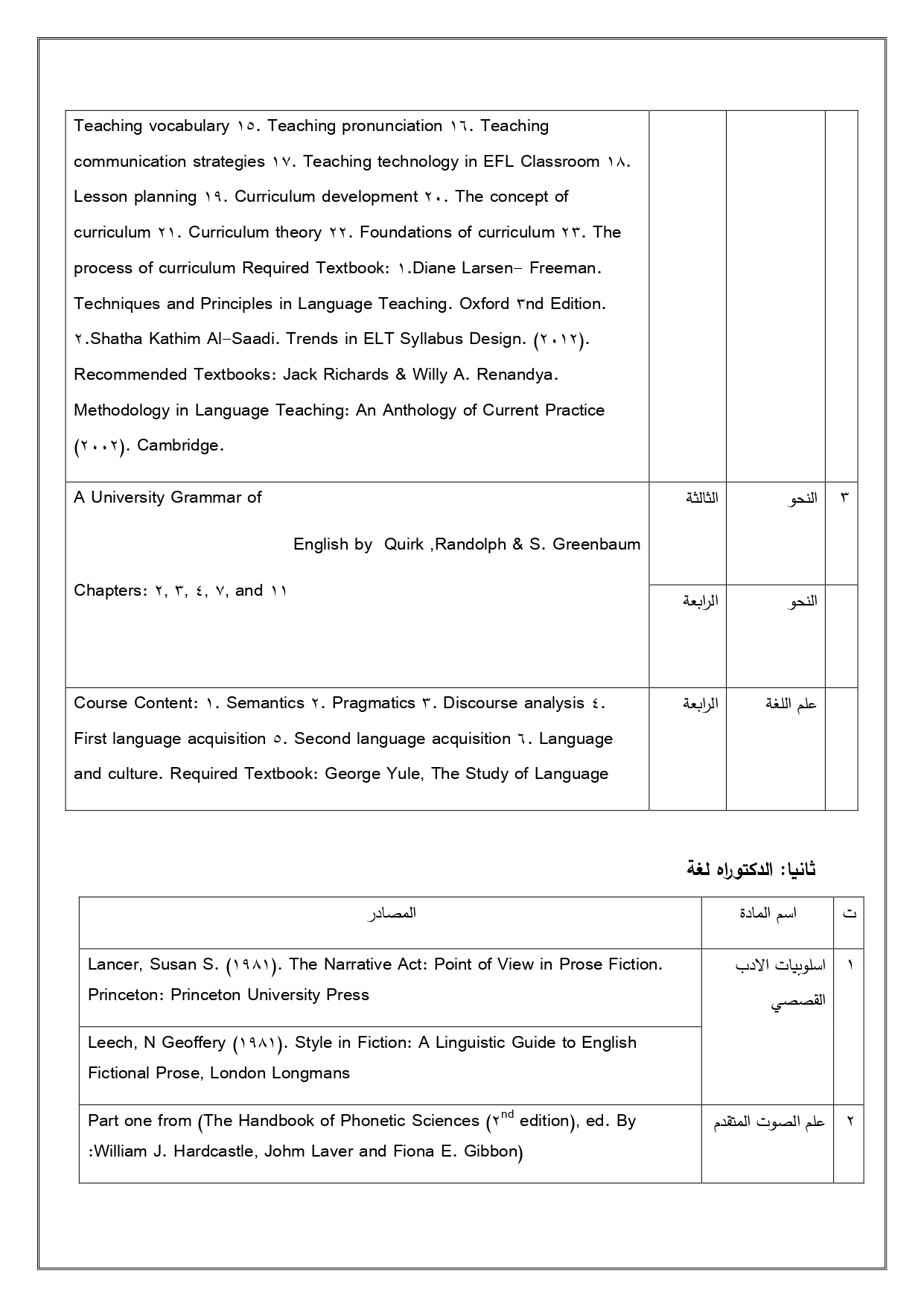الاطاريح و الرسائل قسم اللغة العربية