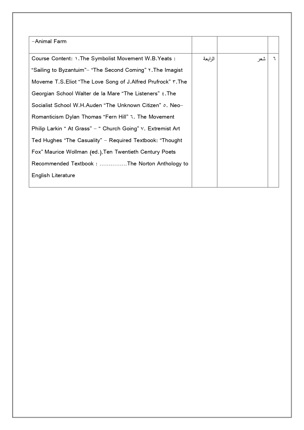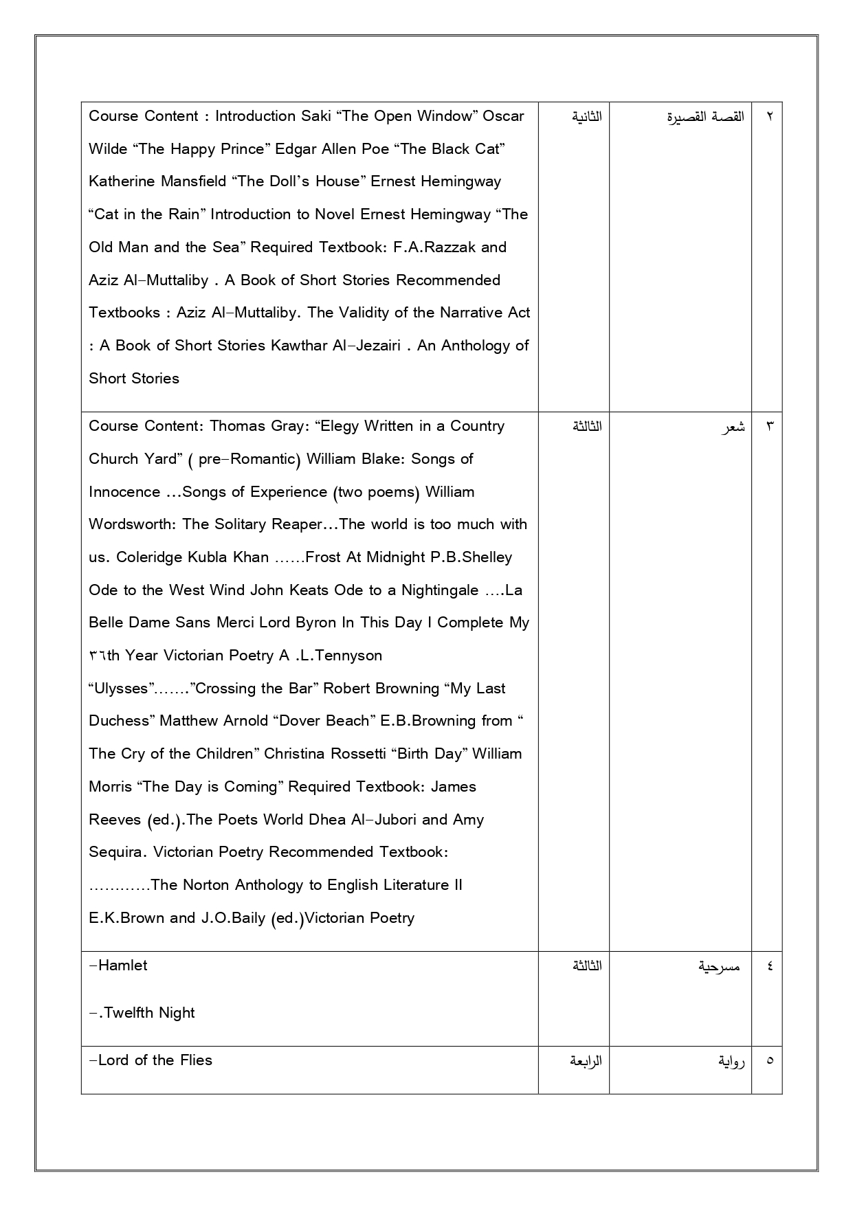 البرنامج الاكاديمي لقسم الانكليزي