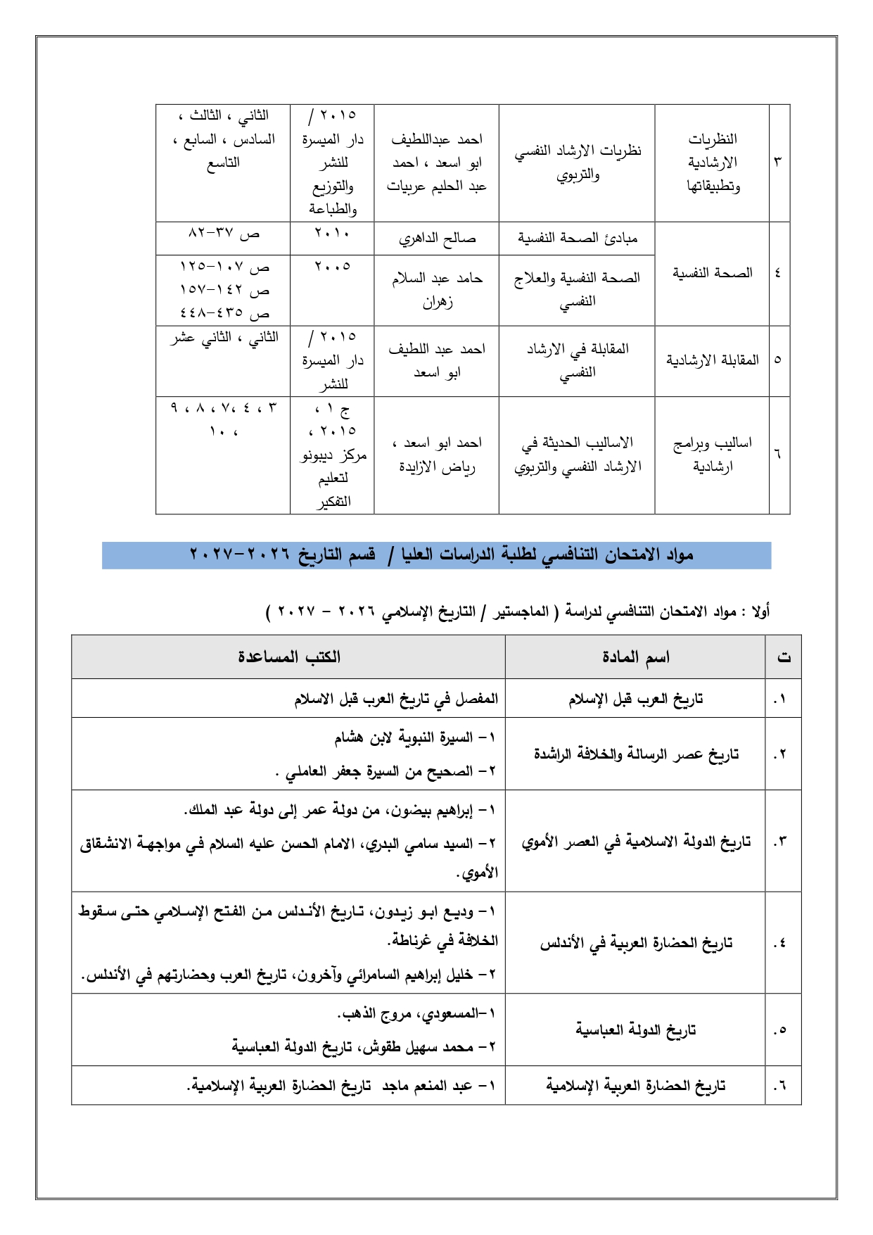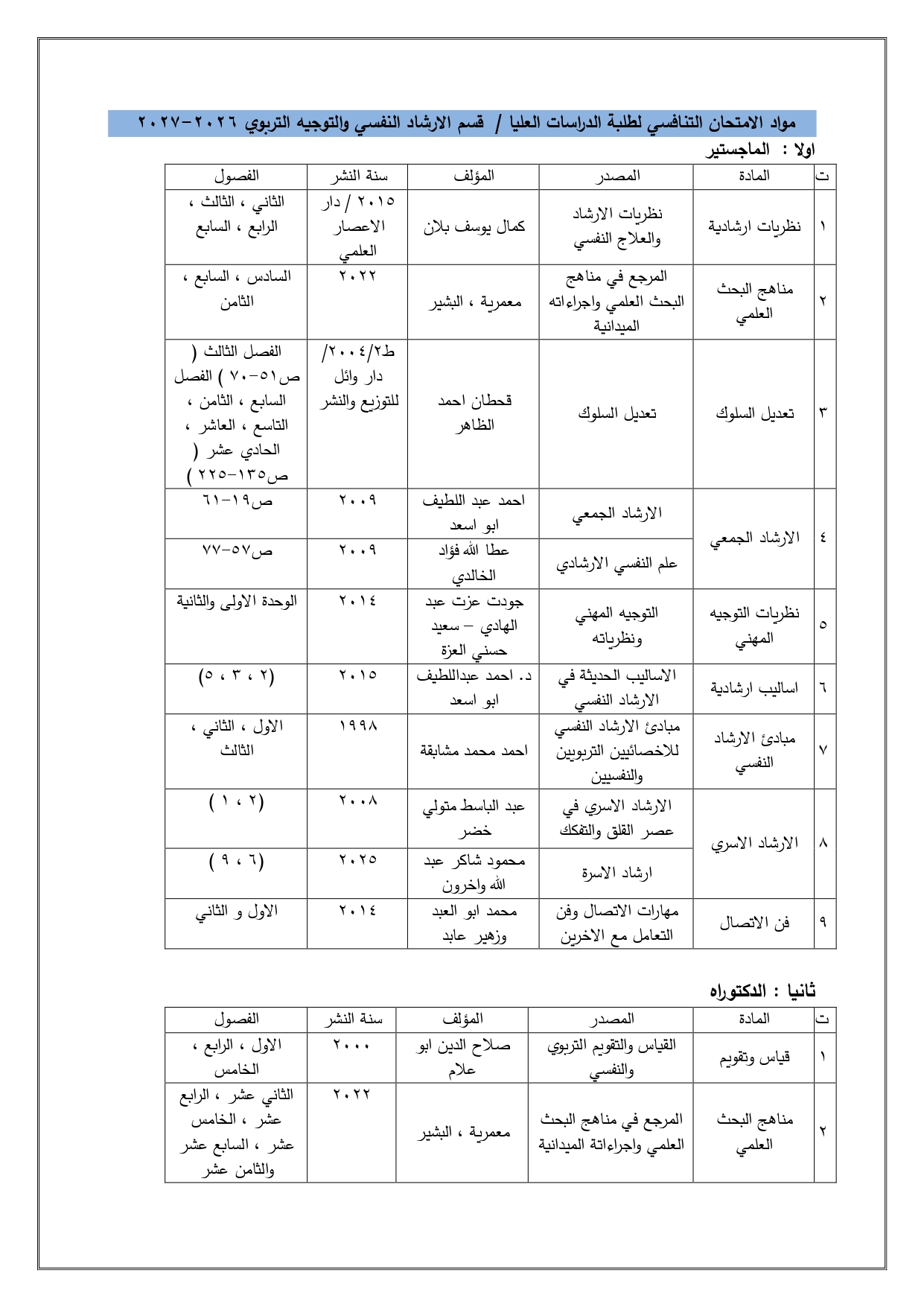 الرسائل و الأطاريح لقسم الارشاد