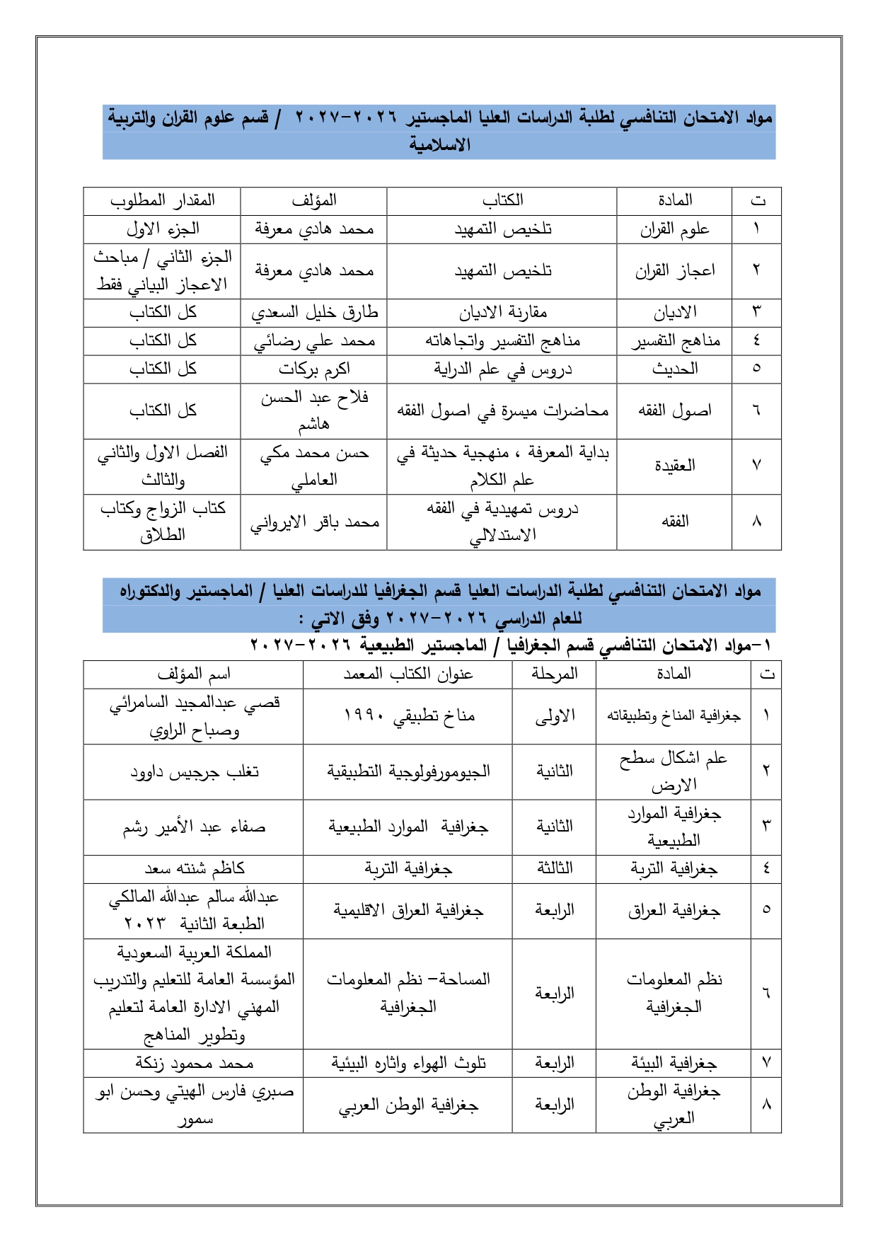 مواد التنافسي لطلبة الدرسات العليا 2024-2025