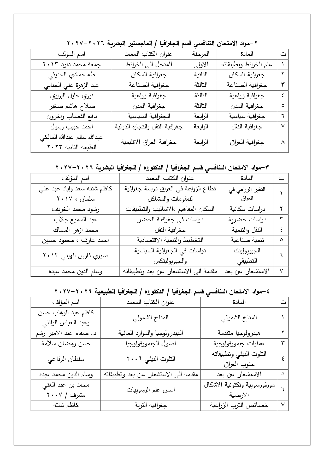 الرسائل والاطاريح لقسم الجغرافيا