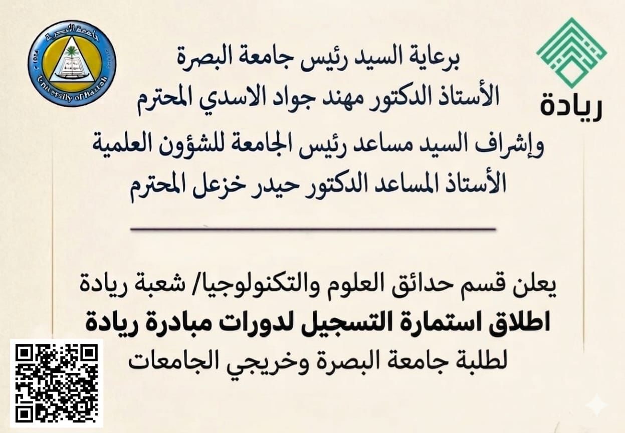 يعلن قسم حدائق العلوم والتكنولوجيا / شعبة ريادة عن إطلاق استمارة التسجيل للمشاريع الريادية لطلبة الجامعة وخريجي الجامعات كافة
